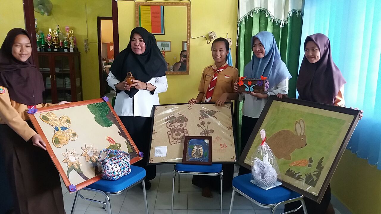 Disamping itu terpantau dilapangan, sampah-sampah seakan disulap menjadi beberapa karya seni. Contohnya bekas kulit atau serat batang pisang dibuat menjadi kotak tisu. Ada juga limbah bekas sedotan dirangkai menjadi taplak meja. Uniknya lagi, ada beberapa karya seni yang dibuat oleh pelajar SMP tersebut menjadi lukisan pajangan dinding.
