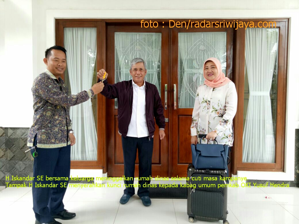 Radar Sriwijaya (OKI) – Setelah permohonan untuk melaksanakan cuti kampanye sebagai calon kepala daerah dalam pilkada 27 juni 2018 mendatang disetujui, Bupati OKI non aktif H Iskandar SE bersama dengan ketua TP PKK Hj Lindasari Subrata SE resmi meninggalkan rumah dinasnya terhitung sejak kamis,15 Februari – 23 Juni 2018.