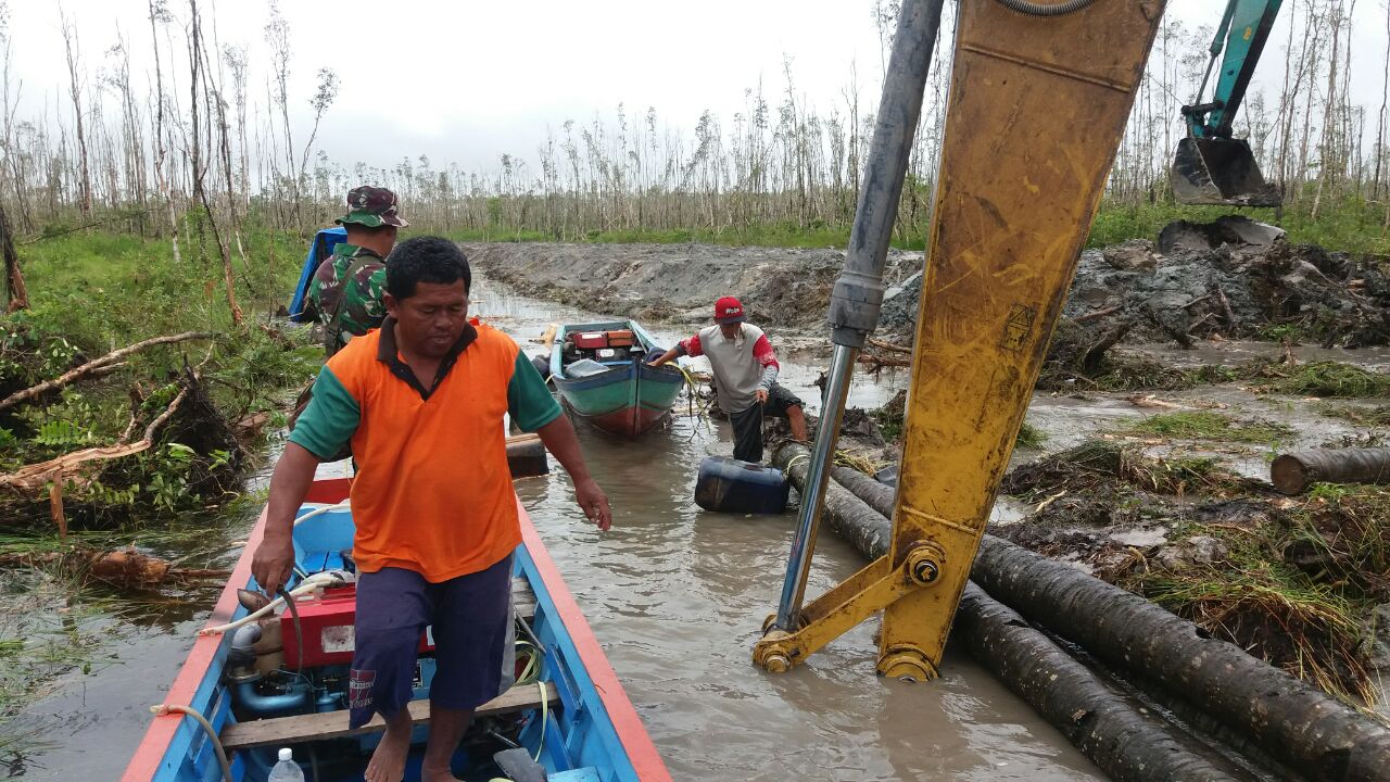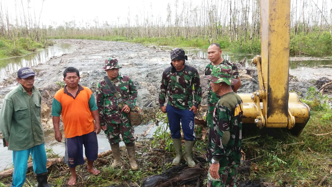Prajurit Kodim 0402/OKI dengan dibantu oleh segenap lapisan masyarakat Desa Sungai Ceper berjibaku mengerjakan pembuatan jalan penghubung antara Desa Sungai Ceper Laut dengan Sungai Ceper Darat.