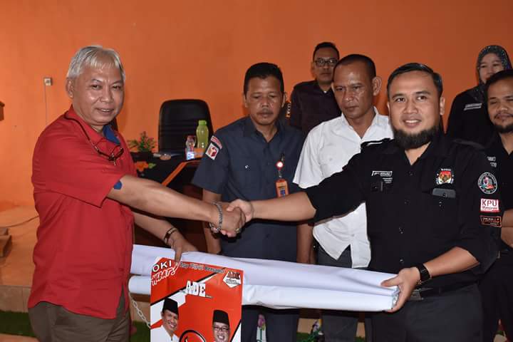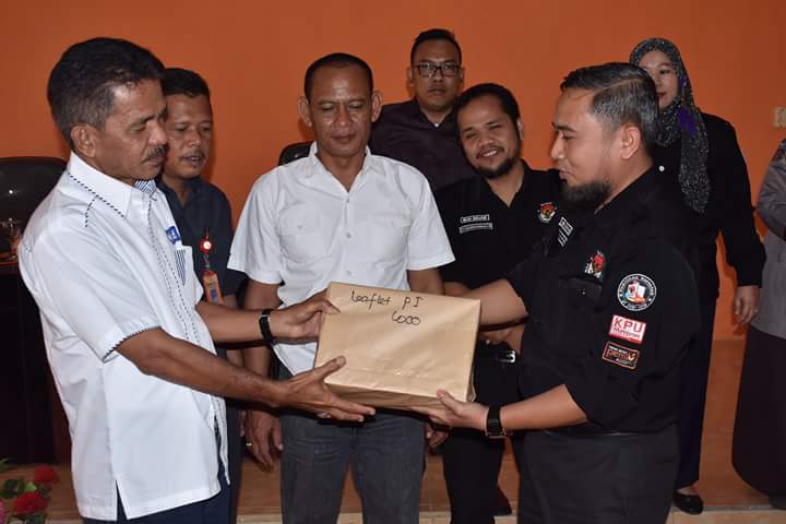 Penyerahan Bahan Kampanye (BK) tersebut diserahkan KPU OKI kepada masing masing tim pemenangan pasangan calon.