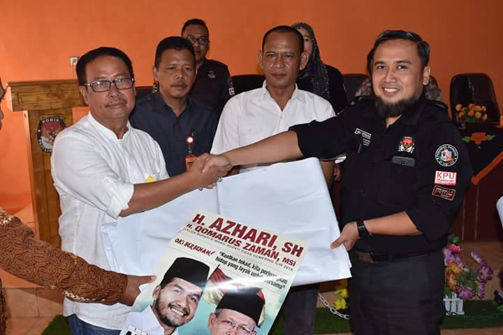 Radar Sriwijaya (OKI) – Tiga pasangan calon (paslon) Pilkada OKI yang akan bertarung pada 27 juni 2018 mendatang, diantaranya H – Iskandar SE – HM Djakfar Shodiq (ISO), Abdiyanto – Made Indrawan (ADE) dan H Azhari – H Qomarus Zaman (Aqor), menerima Bahan Kampanye dari Komisi Pemilihan Umum (KPU) setempat, Rabu (11/4).