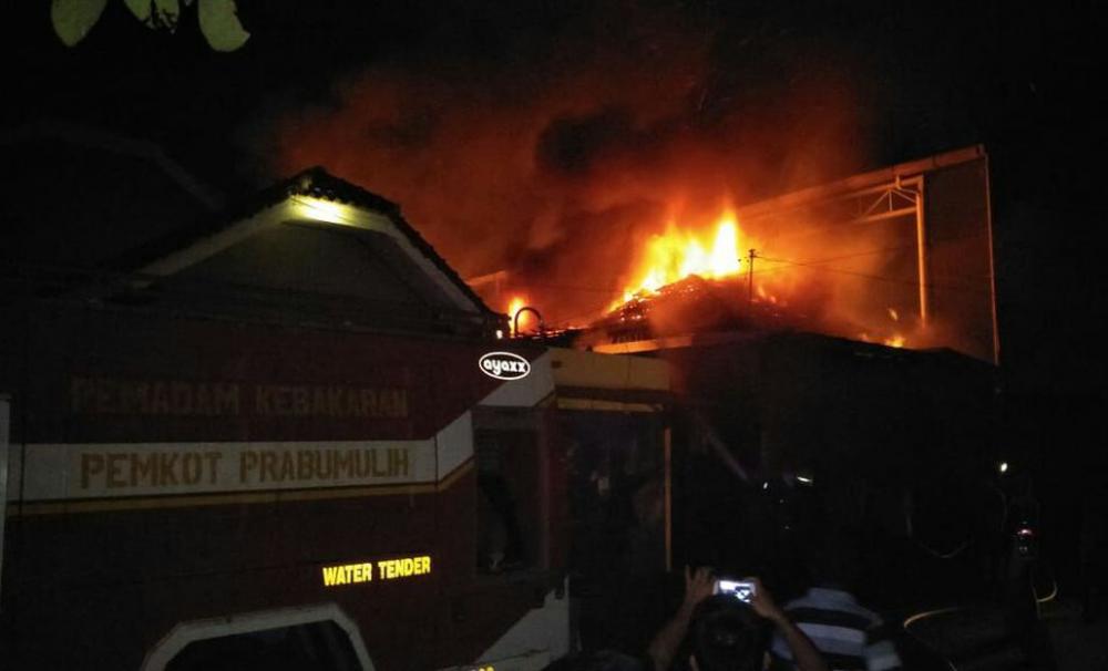 Radar Sriwijaya – Mess Karyawan 12 pintu, mushola dan gudang spare part milik PD Panca Motor yang berada di Jalan Jendral Sudirman Kelurahan Tugu Kecil, Kecamatan Prabumulih Timur ludes dilalap si jago merah, Senin malam (11/6/2018) sekitar pukul 21.30 WIB.