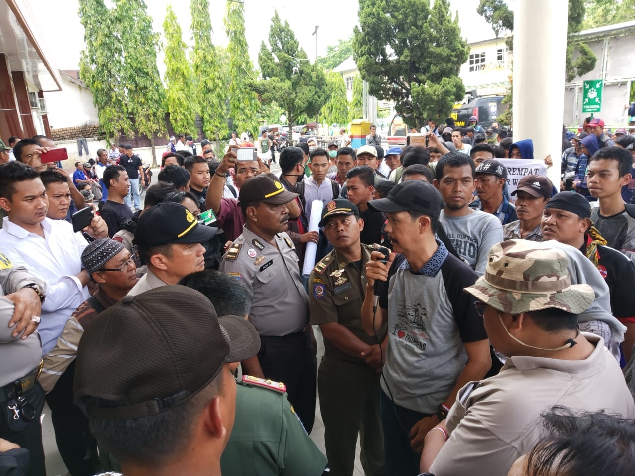 “Aku siap mencopot baju dinas cupu apabila sampai bulan Desember 2018 empat anggota dewan PAW belum juga dilantik,” tegas Ketua DPRD OKU yang langsung disambut apluse massa yang demo.