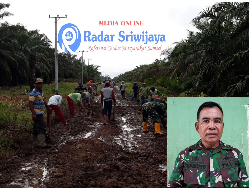 Radar Sriwijaya (OKI) – Prihatin dengan kondisi jalan poros sepanjang 650 meter menghubungkan antara desa Nusantara ke desa Kertamukti, Kecamatan Air Sugihan, Kabupaten Ogan Komering Ilir (OKI) yang kini rusak. Koramil 402-14/Air Sugihan Kodim 0402/OKI ajak masyarakat bergotong royong lakukan perbaikan, Rabu (30/1).