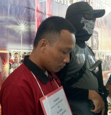 Tersangka Tomi Warsa yang diamankan dengan barang bukti 2,2 kilogram, kemarin.