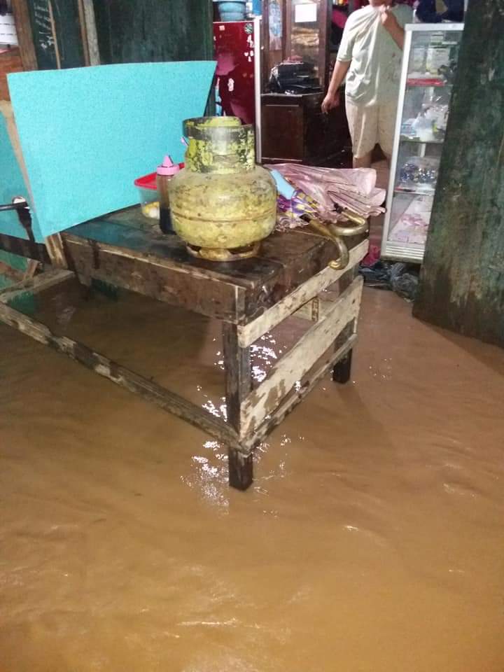 ”Irman, hujan turun sekitar tiga jam lebih air mulai naik menggenangi rumah warga sekitar pukul 19.00 wib, air terus bertambah dan membuat kami kalang kabut semua warga mulai mengakat barang yang mulai basah oleh air,” ujarnya.