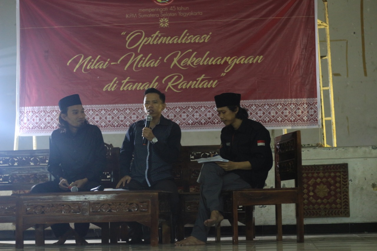 Dialog publik ini mengambil tema “Optimalisasi Nilai-Nilai Kekeluargaan di Tanah Rantau” dihadiri semua perwakilan mahasiswa setiap kabupaten (komisariat) yang berada di bawah naungan IKPM Sumsel Yogyakarta. Hadir sebagai Pembicara Erwin Hadinata Mantan ketua Komisariat OKU Induk juga sebagai sesepuh, Abulaka Archaida (AA) mantan pengurus IKPM Sumsel periode 2012-2014, dan dimoderatori Alfis, perwakilan pengurus.