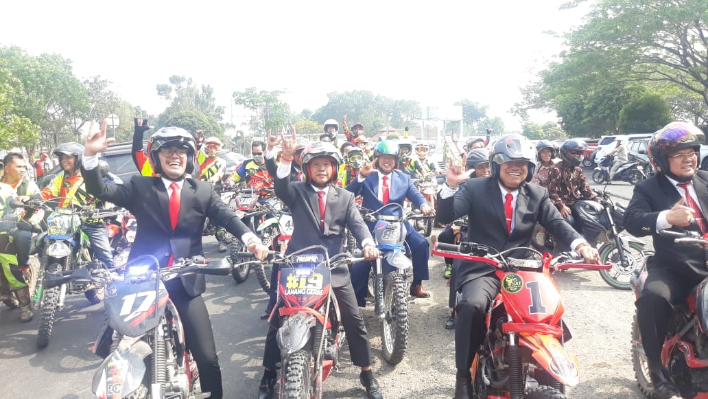 Radar Sriwijaya (OKI),- Legislator terpilih Dewan Perwakilan Rakyat Daerah (DPRD) Kabupaten OKI, Abdiyanto Fikri berangkat pelantikan dengan menggunakan motor trail.