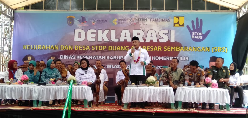 “Ada 3 kelurahan dan 34 desa yang hari ini akan deklarasikan stop BAB sembarangan. Tujuannya untuk merubah hidup sehat tanpa BAB disembarang tempat. Artinya, kebiasaan lama BAB sembarangan tak lagi dilakukan oleh masyarakat,” ungkap Kepala Dinas Kesehatan OKI, HM. Lubis, SKm.,M.Kes.
