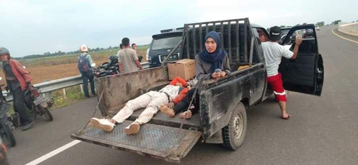 photo : Korban Lakalantas dibawa dengan menggunakan mobil pick up.(raden/www.radarsriwijaya.com/ist)