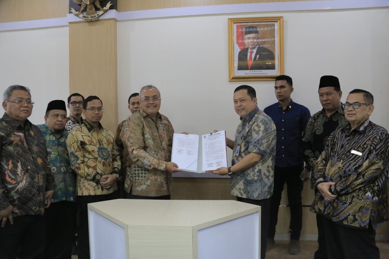 photo : panandatanganan naskah hibah kepada Bawaslu seluas tiga ribu meter.(www.radarsriwijaya.com/armizi).