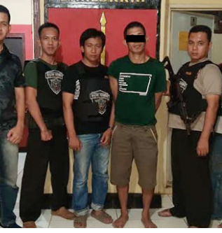 photo : tersangka Ece (kaos hijau) saat diamankan petugas.