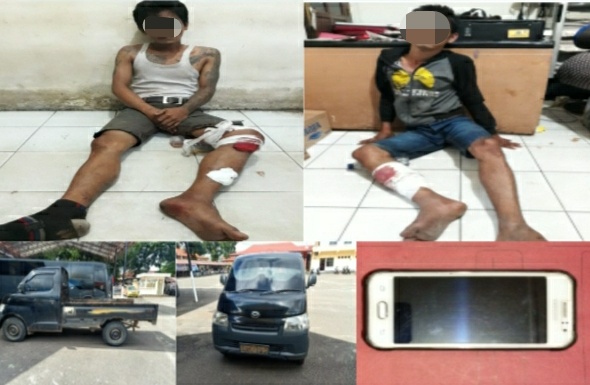 Photo : Kedua pelaku saat diamankan petugas dengan luka tembak dikakinya.