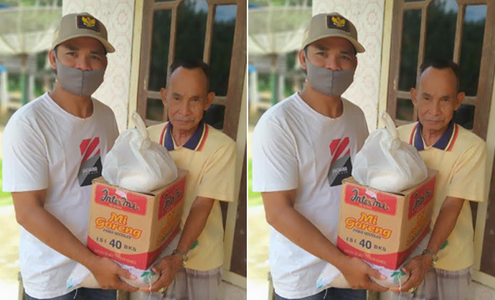photo : Penyerahan sembako kepada warga di Desa Kayulabu Pedamaran Timur.