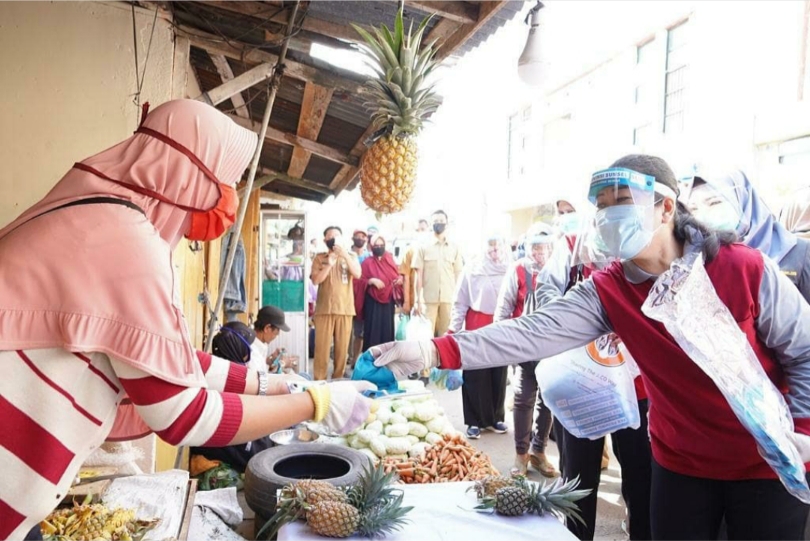 Hal tersebut terungkap saat Feby beserta rombongan kembali membagikan Alat Pelindung Diri (APD) untuk cegah tangkal covid-19 kepada para pedagang yang ada di pasar.