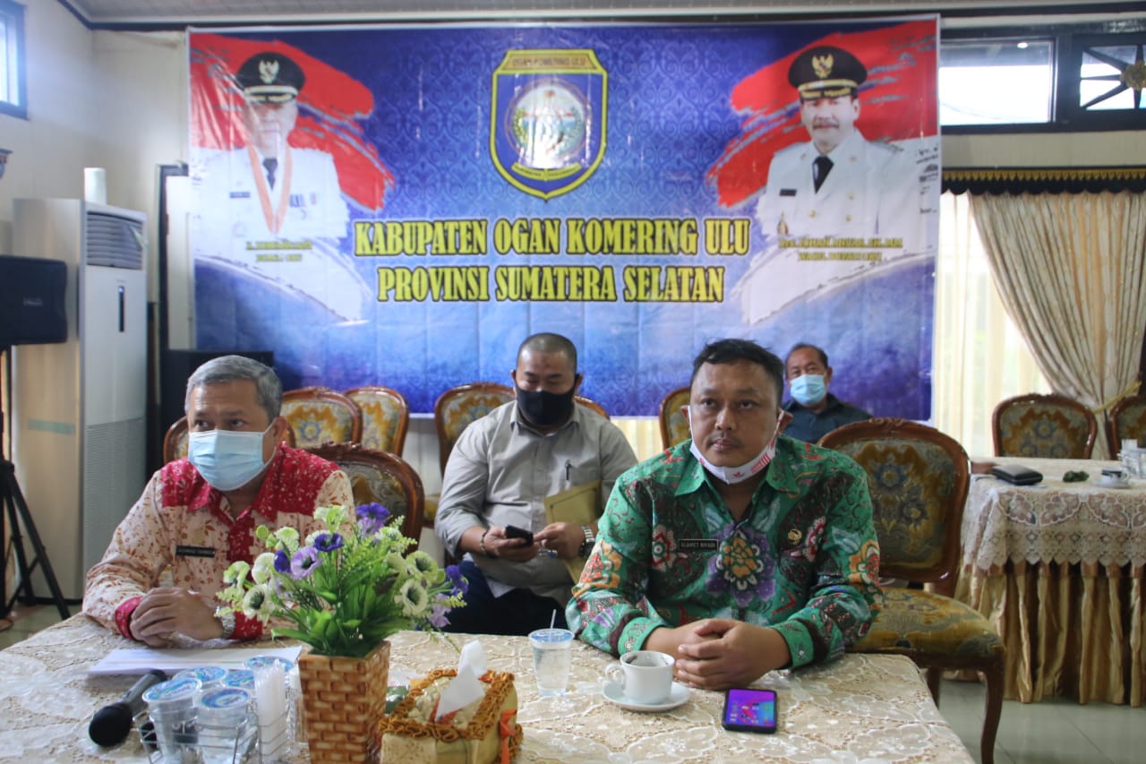 Radar Sriwijaya (OKU) – Sekertaris Daerah (Sekda) Kabupaten Ogan Komering Ulu (OKU) Dr. Drs. Ir. H. Achmad Tarmizi, SE., MT., M. Si., M.H mengikuti Video Conference Rapat Koordinasi Dana Hibah NPHD Pilkada Serentak Tahun 2020 Bertempat di Ruang Induk Rumah Dinas Bupati OKU, Jum’at (18/09/2020)