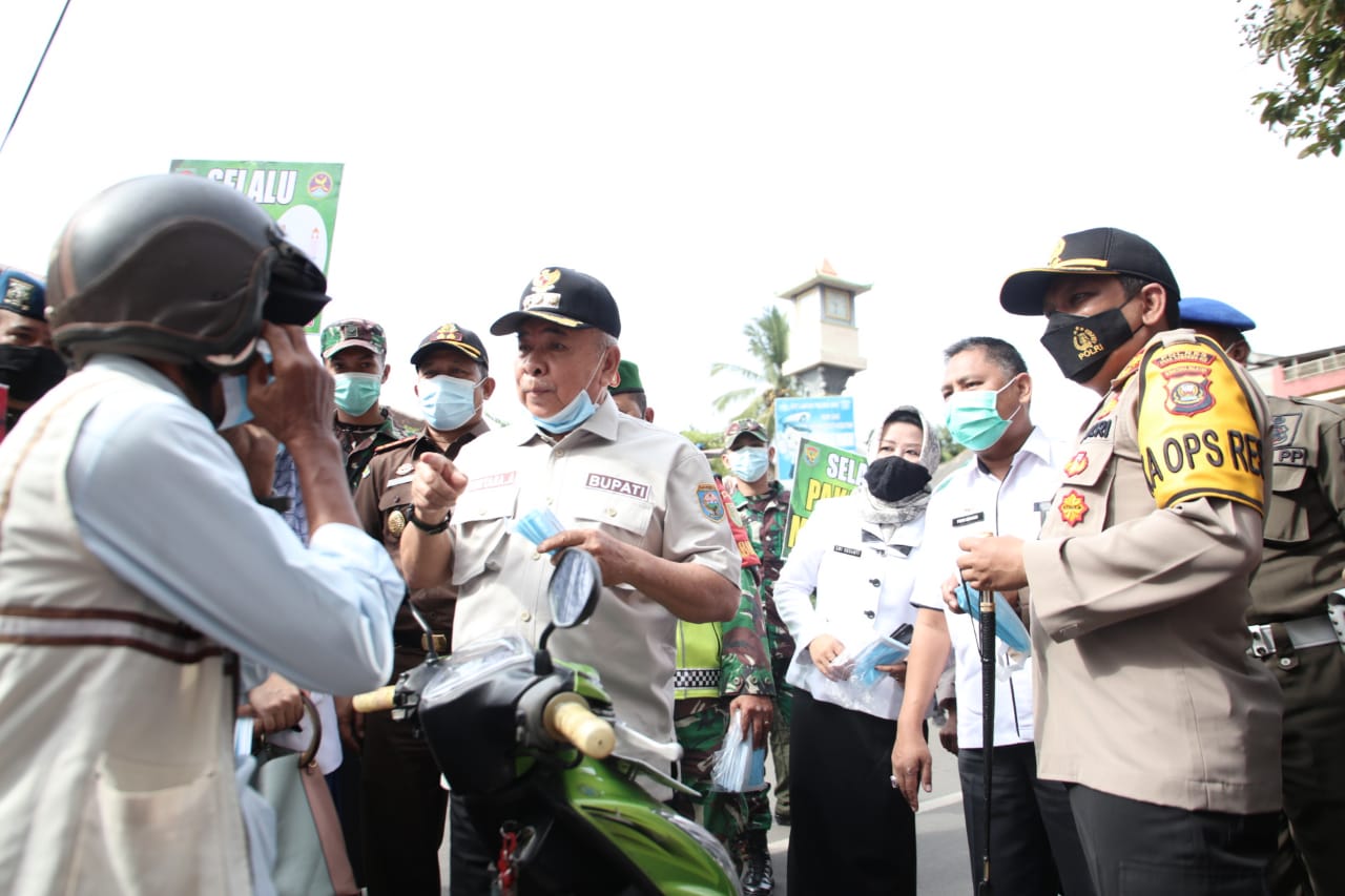 Pembagian Masker serentak dilaksanakan di 2 Titik yaitu Pospol Pasar Atas dan Depan Kantor Dinas Pariwisata Kabupaten OKU.