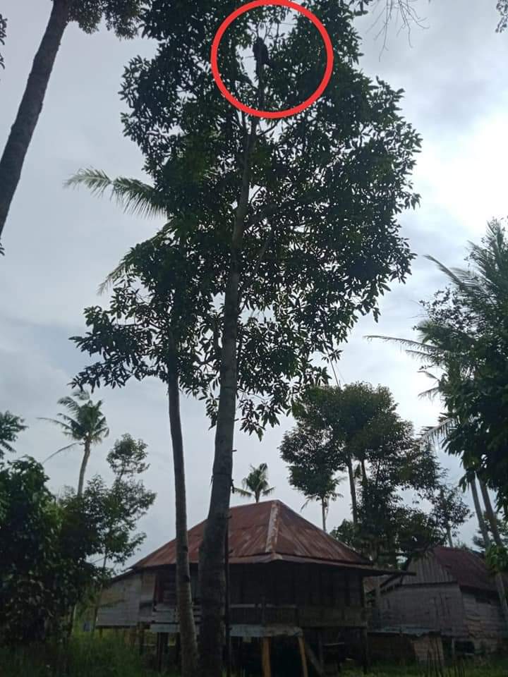 Photo : Seorang siswa tampak sedang berada diatas poohon dengan ketinggian sekitar 15 meter untuk mendapatkan sinyal agar bisa ikut belajar daring. (ist.fbnet)