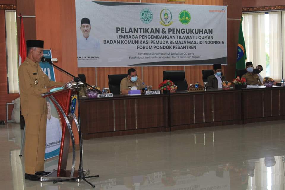 OKI , Radarsriwijaya.com – Wakil Bupati OKI, H.M Dja’far Shodiq mengukuhkan pengurus Badan Komunikasi Pemuda Remaja Masjid Indonesia (BKPRMI), Lembaga Pengembangan Tilawatil Quran, Forum Pondok Pesantren secara bersamaan di Ruang Rapat Bende Seguguk II, Senin (08/02/2021).