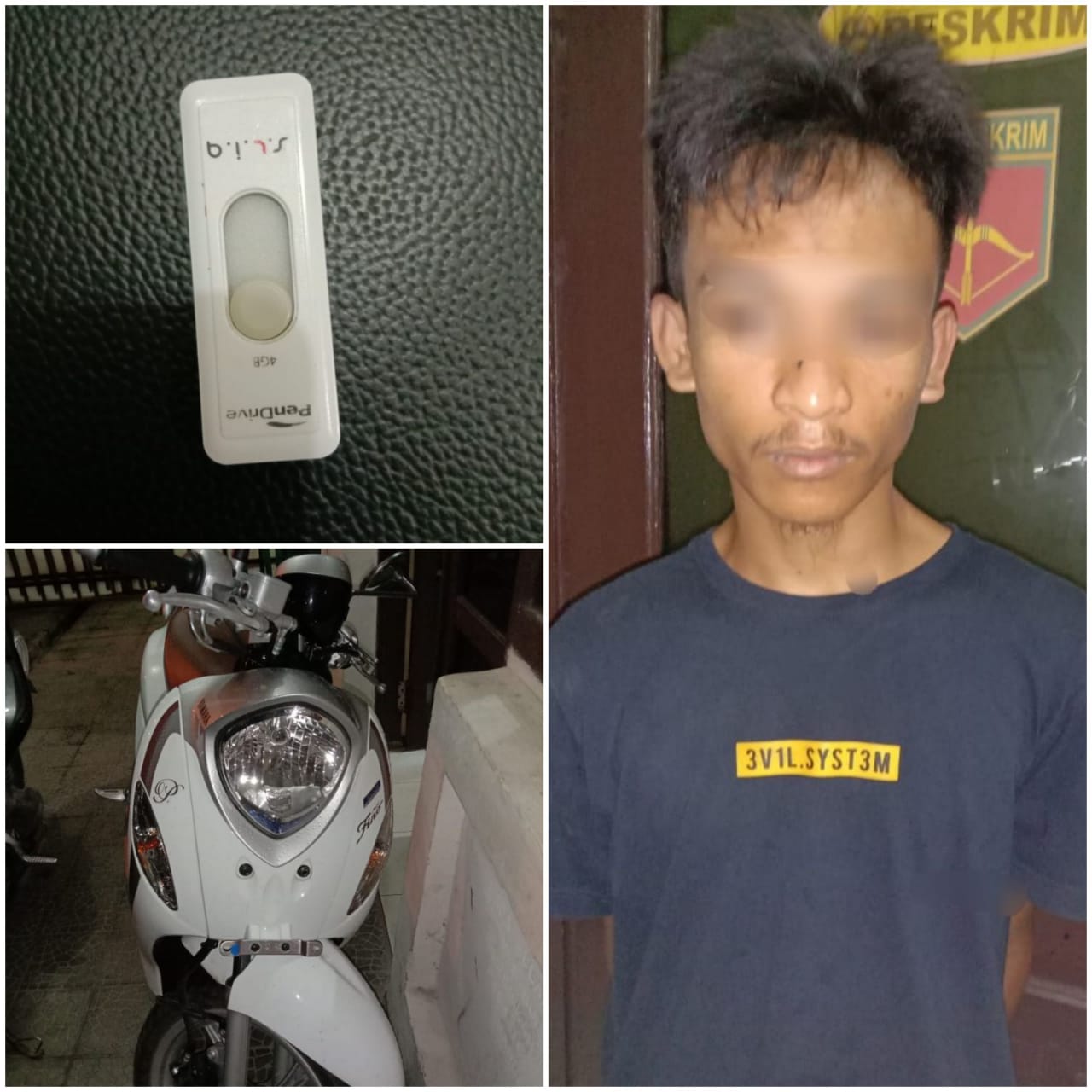 Pelaku mengambil barang milik korban dengan cara masuk ke kontrakan korban yang saat itu korban sedang tidur sedangkan pintu kontrakan dalam keadaan tidak tertutup. saat itu pelaku lewat dijalan lintas jembatan layang melihat pintu kontrakan pelapor masih terbuka, melihat pintu yang terbuka timbul niat pelaku untuk melakukan pencurian.” Terangnya.