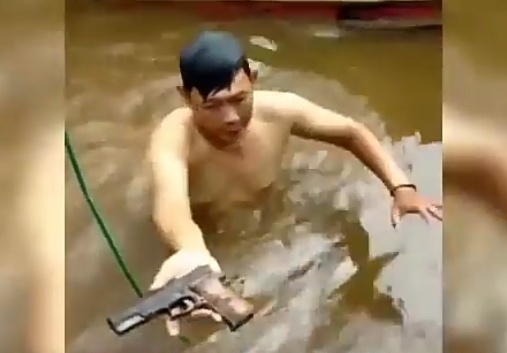 Sungai Menang, (Radarsriwijaya.com),- Upaya Afrizal (49) untuk menghilangkan barang bukti sepucuk senjata api laras pendek dengan membuangnya Kesungai pada saat hendak diamankan petugas.
