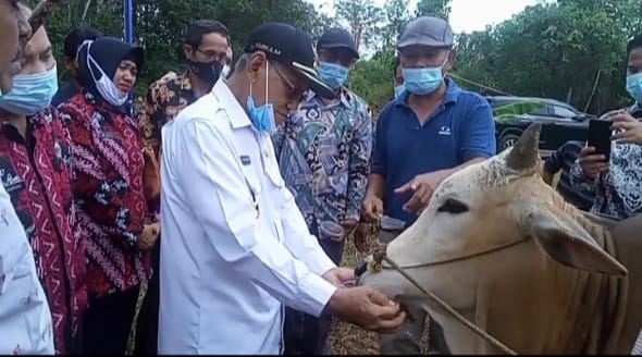 “Ini inovasi baru yang dikelolah oleh lembaga petani untuk menambah hasil ekonomi petani hewan sapi, kambing, dan ikan,” kata Wabup Banyuasin H Slamet Somosentono SH yang bisa mewujudkab program bupati 1 KK 1 sapi.