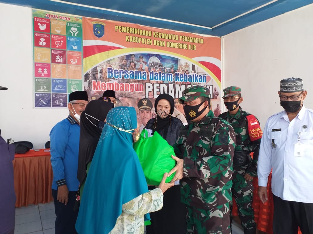 OKI, Radarsriwijaya.com – Baznas Kabupaten OKI bersama Kodim 0402 OKI/OI berikan bantuan sembako kepada warga kurang manpu di Kecamatan Pedamaran Kabupaten OKI bertempat di aula kantor Camat Pedamaran rabu(28/4/2021).