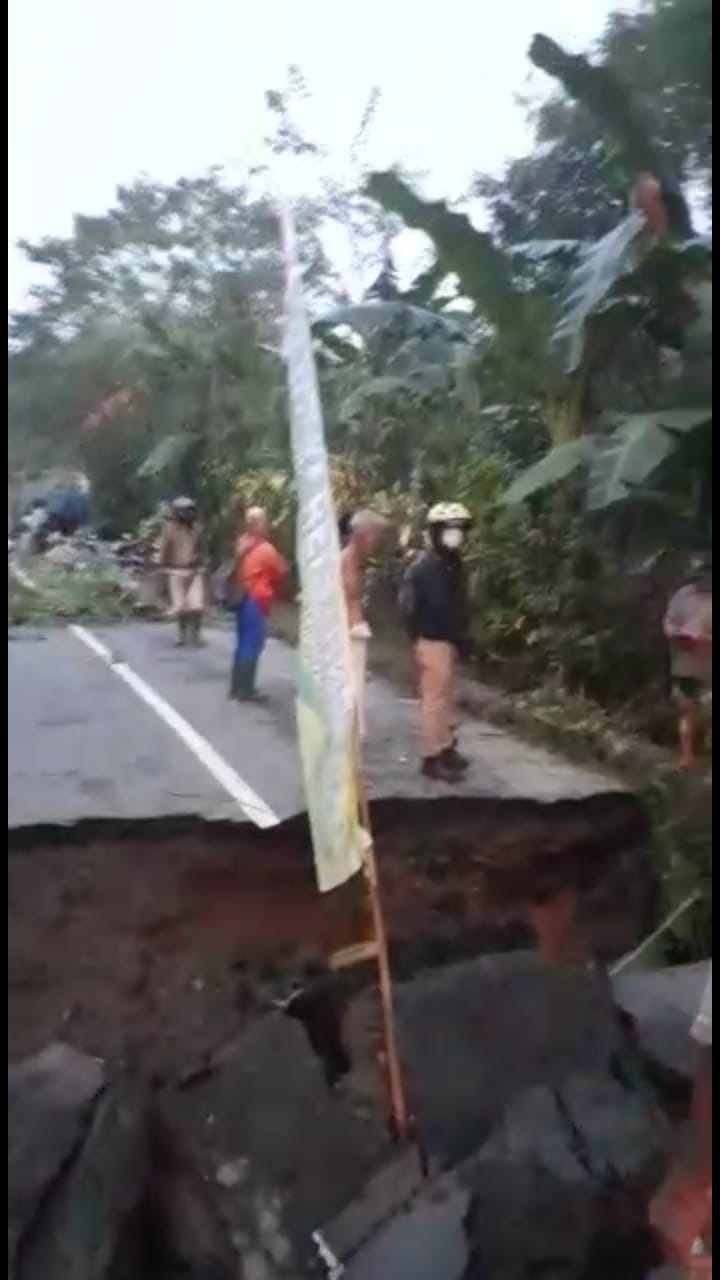Penyebab putusnya jalan tersebut, karena pecahnya gorong-gorong saluran air di bawah permukaan jalan raya yang ada di dusun I.