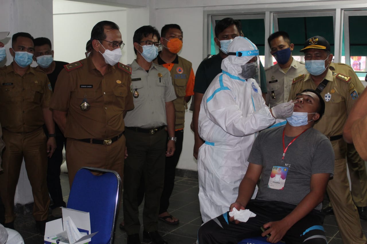 Plh Bupati OKU didampingi tim satgas Covid-19 Kabupaten OKU juga melihat secara langsung pelaksanaan test anti gen yang dilaksanakan oleh tim kesehatan dari dinas kesehatan Kabupaten OKU kepada peserta Jambore PPI yang dilaksanakan secara berkala selama kegiatan jambore berlangsung.”terang Edward.