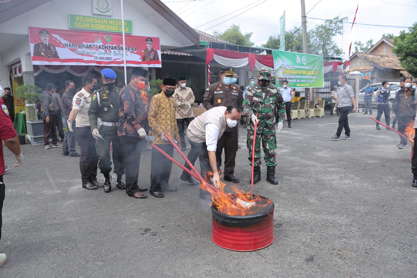 Radar Sriwijaya (OKU) – Pemusnahan Barang Bukti di Kantor Kejaksaan Negeri Kabupaten Ogan Komering Ulu (OKU) Provinsi Sumatera Selatan dalam Rangka HUT Adhyaksa Ke 61 Tahun 2021 di Halaman Kejaksaan Negeri OKU (Kamis, 15 Juli 2021).