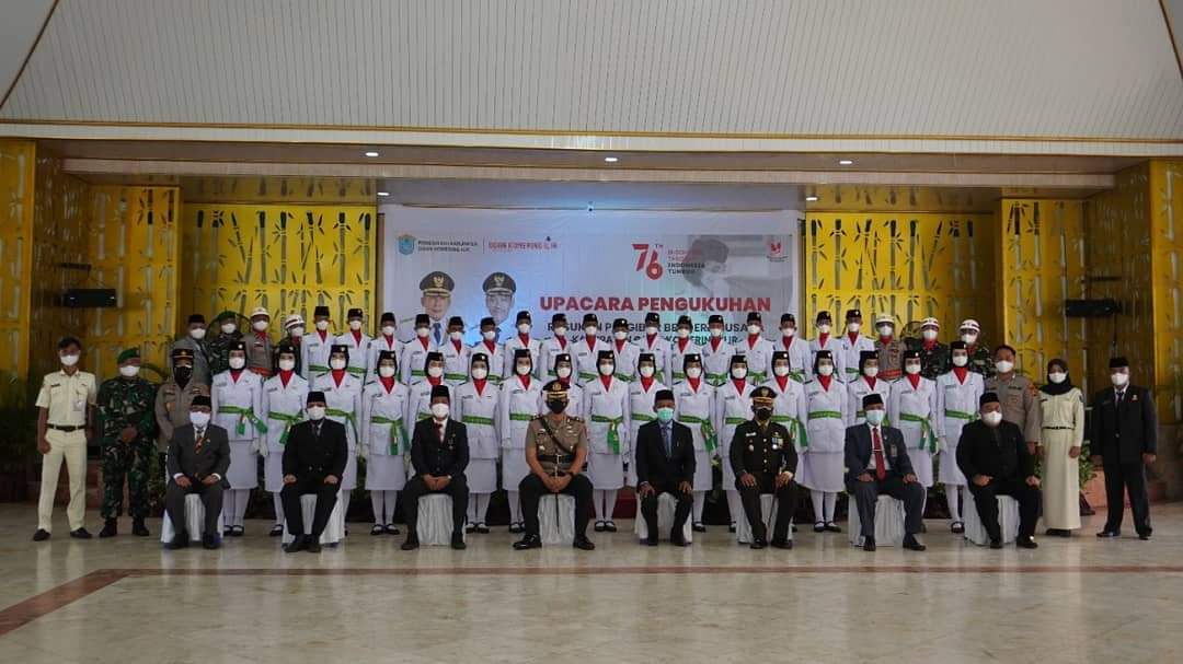 OKI, Radarsriwijaya.com – Menjelang pengibaran Bendera Merah Putih Hari Kemerdekaan Republik Indonesia ke-76, 34 orang pasukan pengibar bendera pusaka (Pasibraka) Kabupaten Ogan Komering Ilir siap menjalankan tugas setelah di kukuhkan Wakil Bupati OKI, H.M Dja’far Shodiq di Pendopo Bende Seguguk, (Jumat, 13082021).