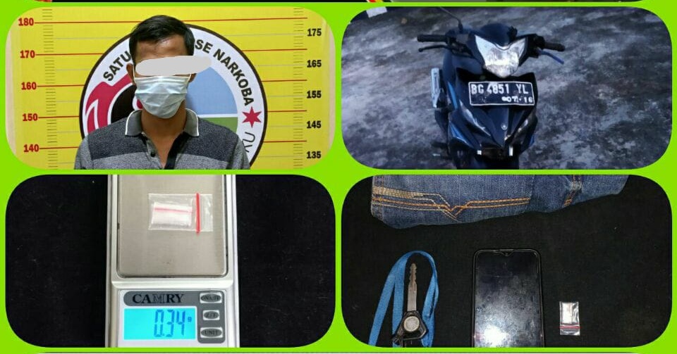 Dari hasil menindak lanjuti informasi tersebut, tim satresnarkoba polres OKU melakukan pengembangan penyelidikan terhadap tersangka , alhasil setelah dilakukan penggeledahan terhadap tersangka ditemukan barang bukti narkotika diduga jenis sabu seberat 0,34 gram.