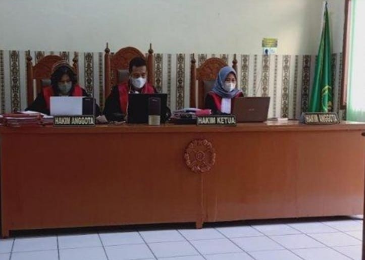 Dalam persidangan yang digelar secara virtual, selasa (7/9/2021), majelis hakim M. Rizky Musmar, S.H M.H didampingi hakim Indah Wijayati, S.H M.Kn dan Yuri Alpha Fawnia, S.H majelis hakim secara bergiliran membacakan putusan.