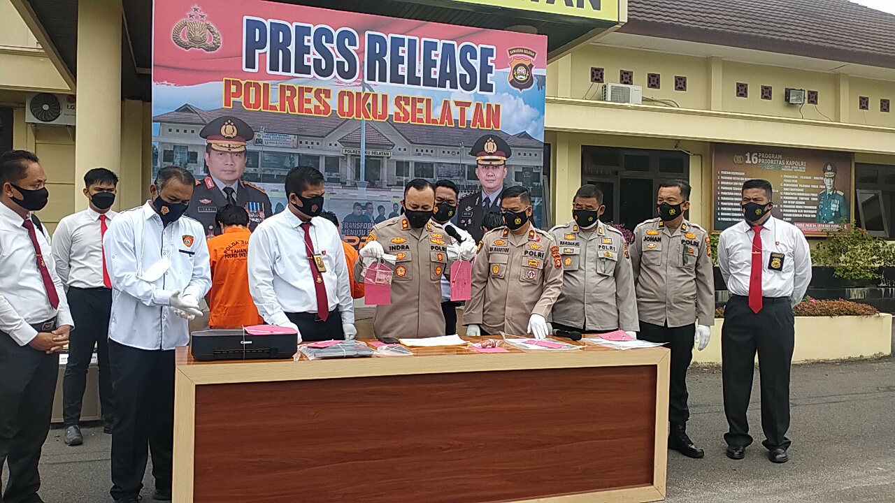 Pers reliase ini dipimpin langsung oleh Kapolres Ogan Komering Ulu (OKU) Selatan AKBP Indra Arya Yudha, didampingi, Waka Polres OKU Selatan, Kompol MP Nasution, Kasat Reskrim AKP Achep Shara, Kasi Hukmas Polres OKU Selatan Iptu Johan Safri, Kasat Intel Polres OKU Selatan dan PJU Polres OKU Selatan.