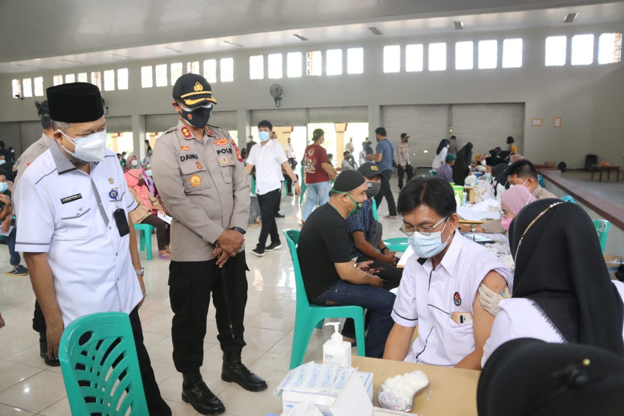 Radar Sriwijaya (OKU) – Sekda Kabupaten Ogan Komering Ulu (OKU) Provinsi Sumatera Selelata Dr. Drs. Ir. H. Achmad Tarmizi, SE, SH, MT, M.Si, MH, M.Pd, Ph.D., Menghadiri Acara Vaksinasi Massal Covid-19 Bersama Polres OKU dan FKUB Kabupaten OKU, Bertempat Gedung Serba Guna Islamic Center Baturaja Kamis,15/09/2021