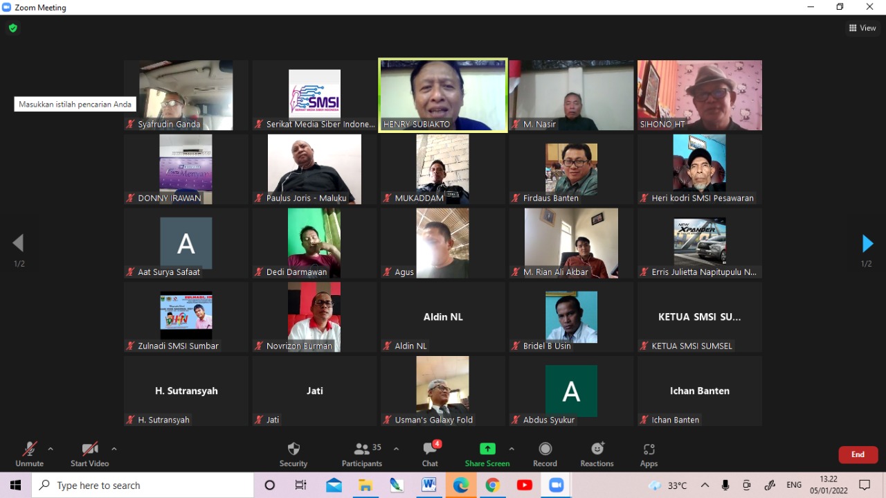 Diskusi yang berlangsung hybrid- online dan offline, dipandu oleh moderator Ketua Bidang Luar Negeri SMSI Pusat, Aat Surya Safaat dengan dihadiri anggota SMSI di seluruh Tanah Air.