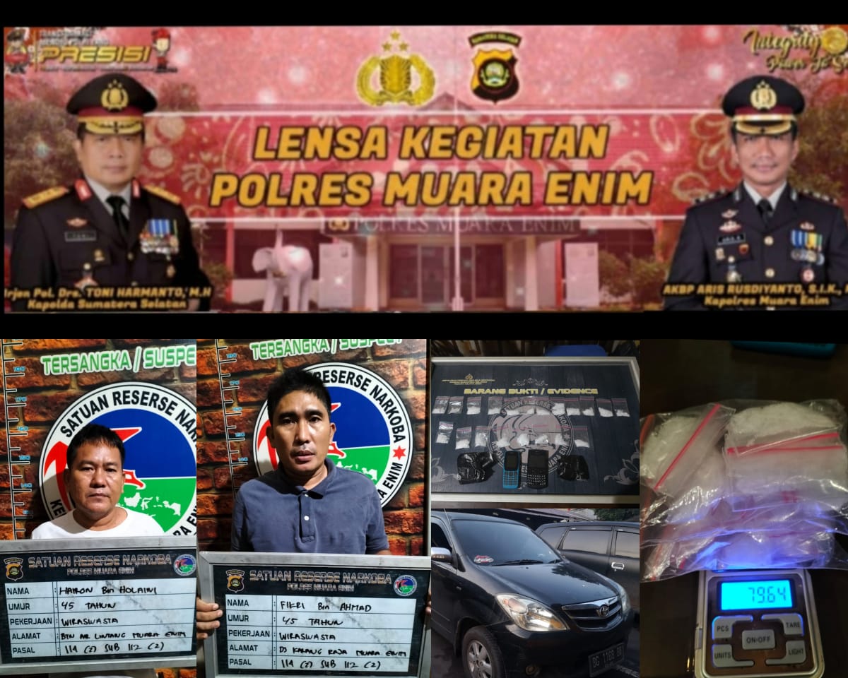 “Kita berhasil mengamankan dua tersangka yang terlibat peredaran narkoba. Ada 10 paket yang diamankan sebagai barang bukti dari tersangka yang berhasil kita amankan,” ungkap Kapolres Muara Enim AKBP Aris melalui Kasatres Narkoba Polres Muara Enim AKP Burnani.