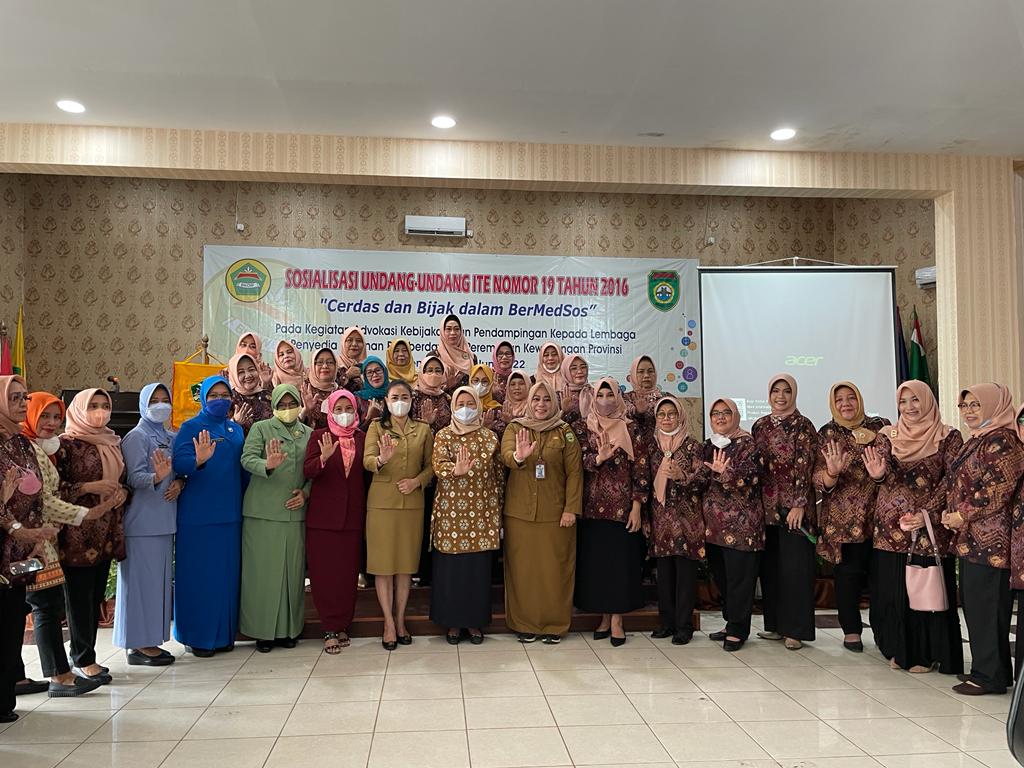 Radar Sriwijaya, Palembang – BKOW Provinsi Sumatera Selatan (Sumsel) melalui Bidang Kehumasan menggelar Sosialisasi Undang Undang ITE No 19 Tahun 2016 dengan menghadirkan narasumber Dwi Karolita,S.Sos.M.M, Kasi Sumber Daya Komunikasi Publik Dinas Kominfo Provinsi Sumatera Selatan. Kegiatan Sosialisasi dengan Tema “Cerdas dan Bijak dalam BerMedsos” ini berlangsung di Gedung Perjuangan Wanita Palembang Jalan Kapten A Rivai Palembang, Senin (20/6/2022).