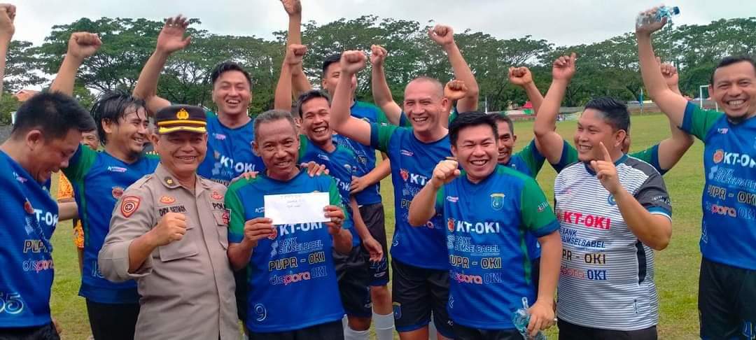 Tim Forkopimda FC yang menurunkan Wabup OKI HM Dja’far Shodiq sebagai kapten tim, bersama Dandim 0402 OKI-OI, Letkol INF Hendra Saputra S.Sos MM, Mi.Pol dan sejumlah pimpinan Organisasi Perangkat Daerah (OPD) Kabupaten OKI keluar sebagai juara pertama.
