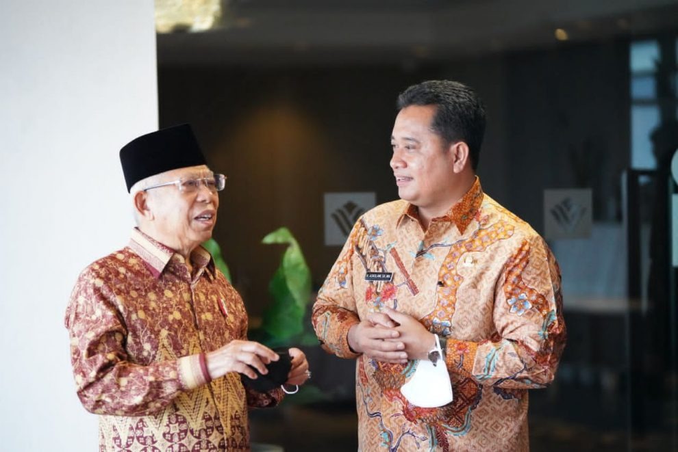 Radar Sriwijaya, Banyuasin – Bupati Banyuasin, H. Askolani SH., MH berbincang penuh keakraban dengan Wakil Presiden RI, Prof. Dr. KH. Ma’ruf Amin seusai peresmian Pembukaan Sidang Pleno XlX Asosiasi Fakultas Ekonomi dan Bisnis Indonesia (AFEBI) dan Halal Indonesia Summit 2022 berlangsung di Hotel Wyndham, Jakabaring Selatan, Kabupaten Banyuasin Provinsi Sumatera Selatan, Rabu (7/9).