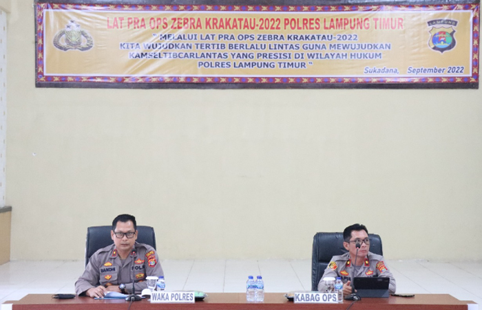 Radar Sriwijaya, Lampung – Polres Lampung Timur (Lamtim) melaksanakan Lat Pra Ops Zebra Krakatau 2022 di aula Tri Brata, Jumat (30/9/2022).