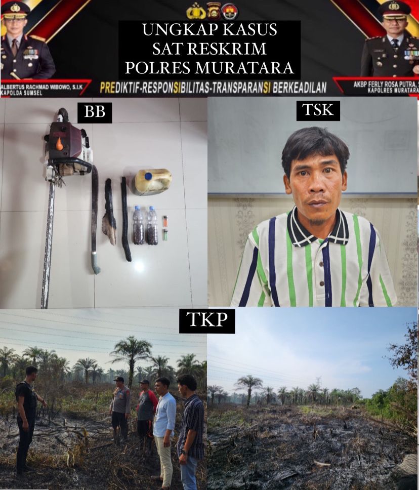 Dari hasil Patroli kemudian ditemukan ada lahan milik warga yang terbakar selanjutnya gabungan bersama Team Kahutlah Polres Muratara ke TKP didapati pelaku yang sengaja diduga membakar.