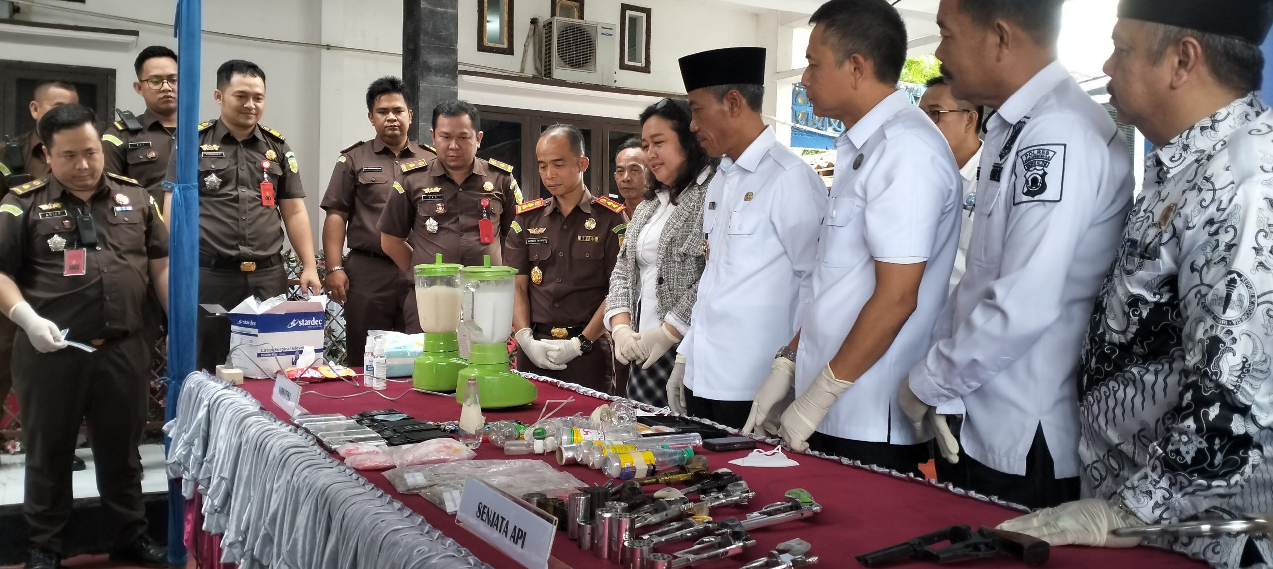 Mulai dari Narkotika, senjata api, senjata tajam, pakaian dan lainnya, Rabu (13/12). Untuk perkara narkotika naik 10 persen dari tahun lalu.