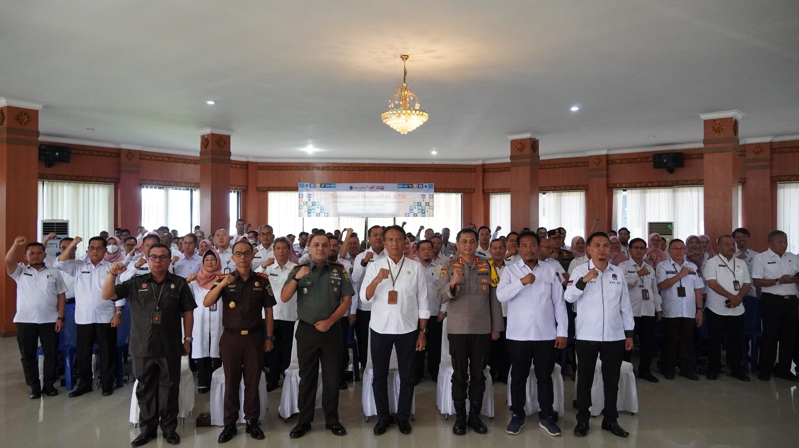 Radarsriwijya.com, (OKI).-Aparatur Sipil Negara (ASN) Kabupaten Ogan Komering Ilir (OKI) mengikuti Deklarasi Netralitas pada pemilihan umum (Pemilu) 2024 serentak se Sumsel.