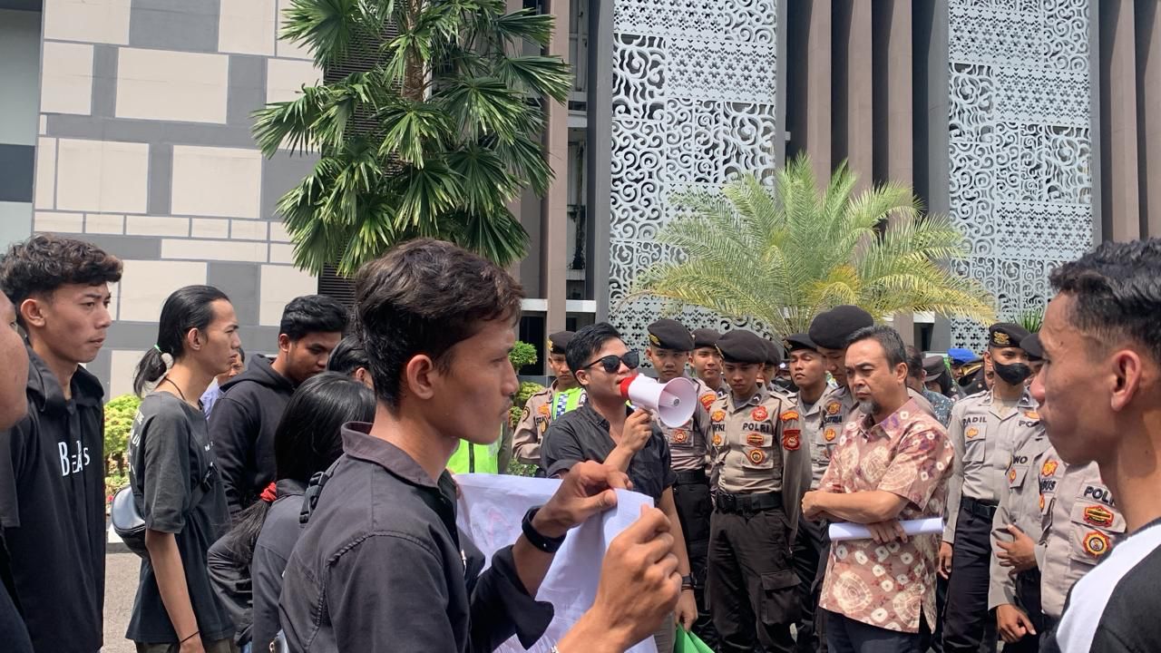 “kedatangan kami disini untuk menyampaikan aspirasi terkait atas dilantiknya kepala dinas pendidikan yang baru dikarenakan terdapat indikasi rangkap jabatan yaitu telah menjadi Pj bupati OKU, serta meminta pj gubernur sumsel untuk mencopot kabid sma dan kabid smk pada dinas pendidikan provinsi sumsel karena dinilai tidak mampu dalam menyelesaikan masalah Pendidikan di tingkat SMA/SMK yang ada di Sumatera Selatan karena masih banyaknya Indikasi Dugaan Jual Beli Seragam Sekolah dan Pungutan Liar berkedok KOMITE Sekolah serta tidak benar nya pengelolaan DANA BOS di setiap sekolah yang ada di sumsel” pungkas Gusti selaku Korlap.
