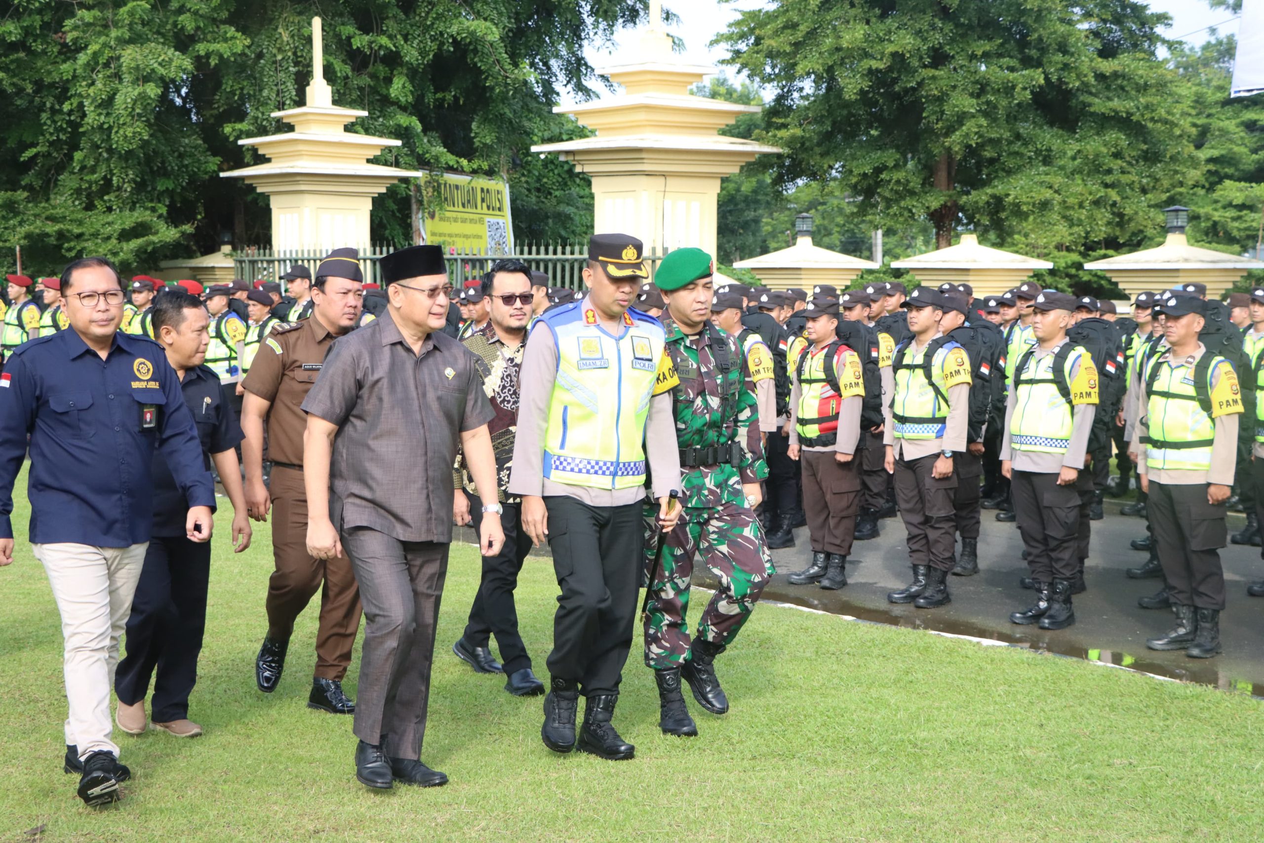 Foto : Kapolres OKU meninjau pasukan sebelum dilakukan pergeseran menuju ketempat masing-masing Armizi/Radar Sriwijaya
