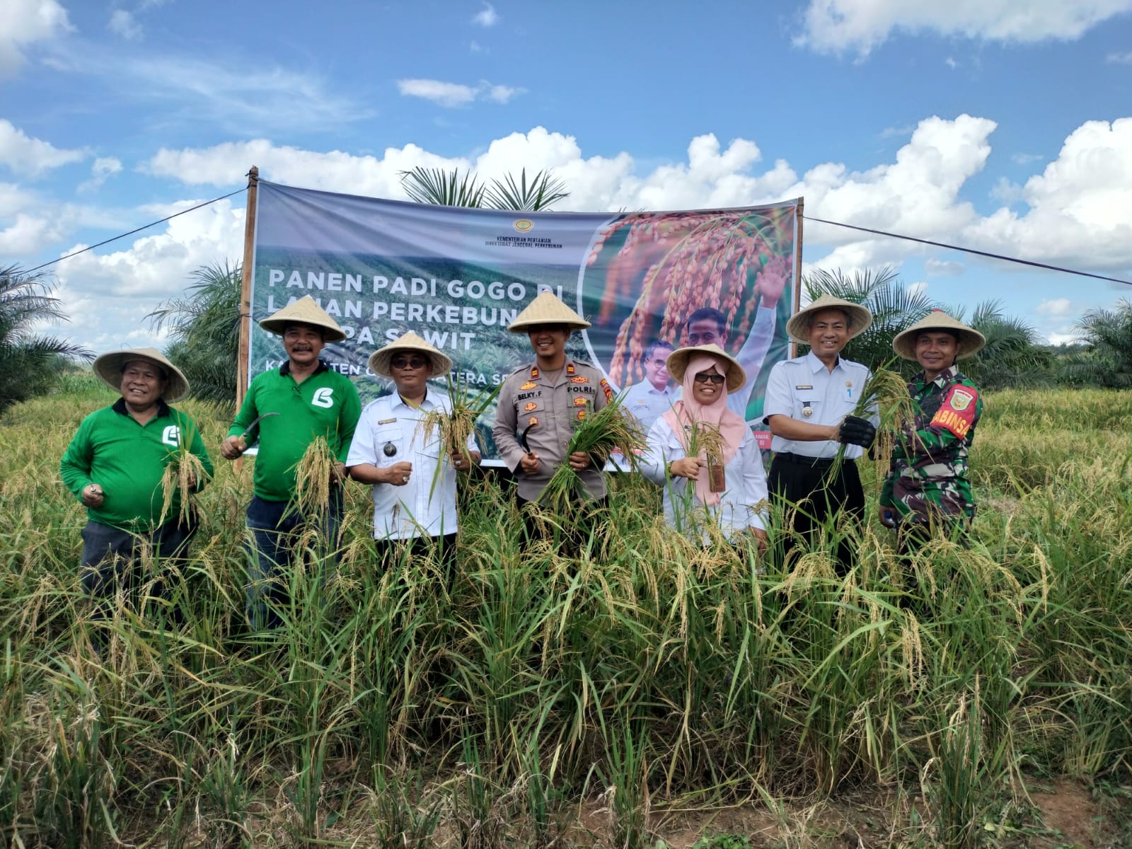 “Dengan adanya panen perdana ini kami berharap bisa menjadi percontohan untuk kelompok tani lain agar mau menanam padi gogo di sela tanaman kelapa sawit,” ujar Pujono.