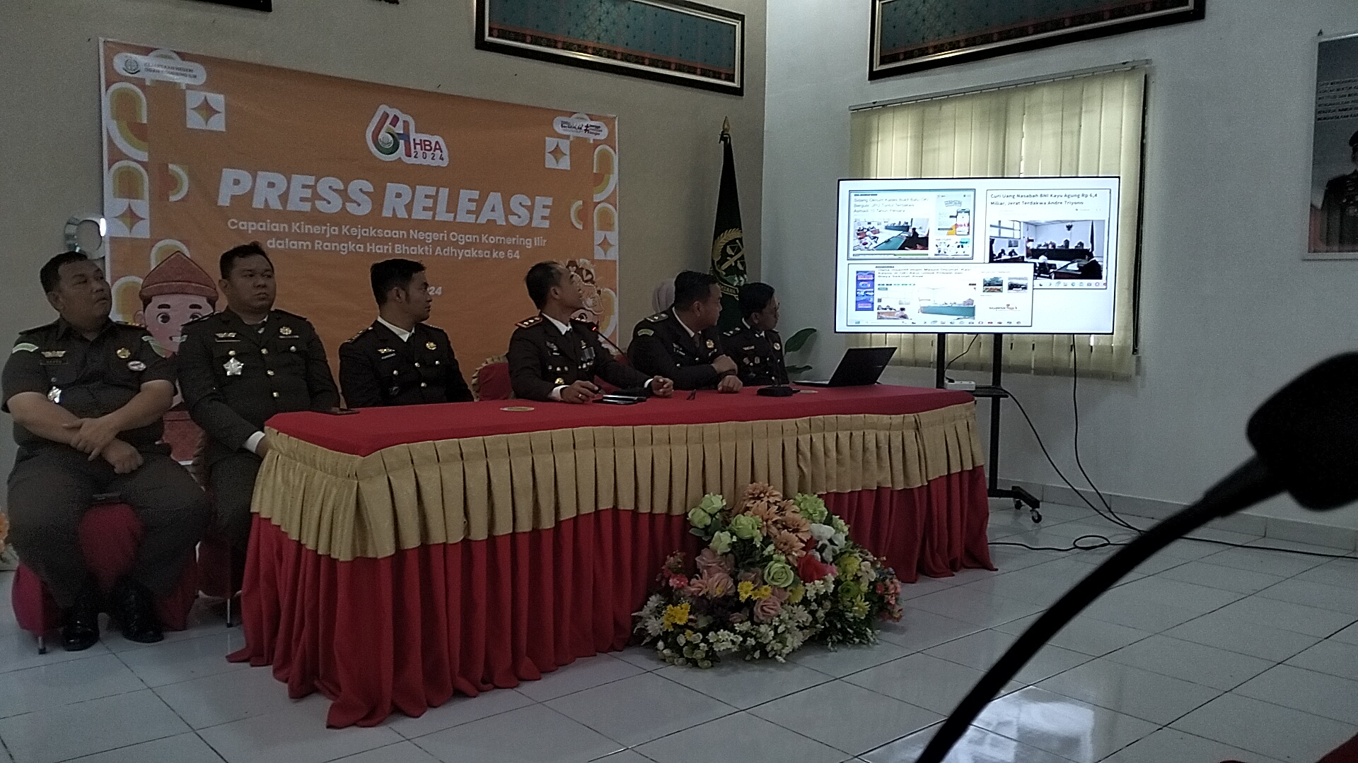 Caption : Kegiatan pressrelease dalam rangka Hari Bhakti Adhiyaksa ke 64 Tahun 2024 Kejari OKI. (Photo/dok.radarsriwijaya.com)