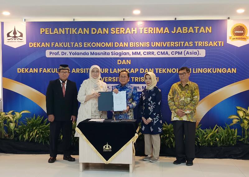 Pelantikan Dekan FEB Usakti dan Serah Terima Jabatan Dekan FALTL dilakukan oleh Rektor Usakti Prof. Dr. Ir. Kadarsah Suryadi, DEA., didampingi Pengurus Yayasan Trisakti, Senat Usakti, dan Rohaniawan.