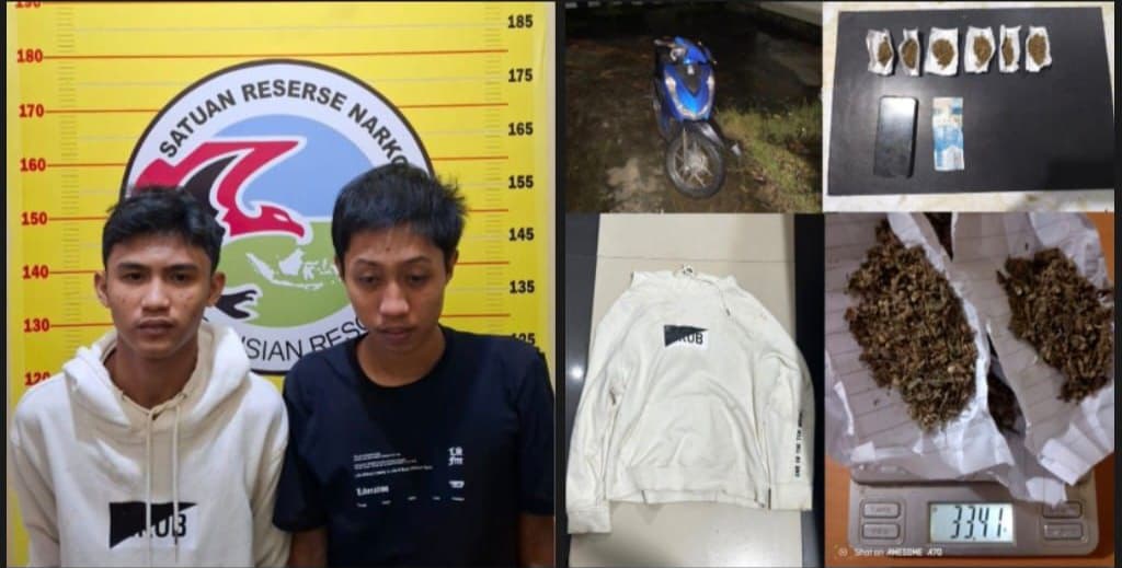 Saat Pelaku AA (18) diamankan berhasil ditemukan barang bukti berupa 6 (enam) bungkus kertas warna putih yang didalamnya berisikan daun-daun kering yang diduga Narkotika jenis Ganja dengan berat 33,41 (Tiga Tiga Koman Empat Satu) gram.